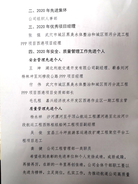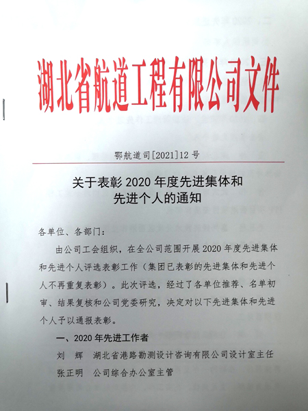关于表彰2020年度先进集体和先进个人的通知